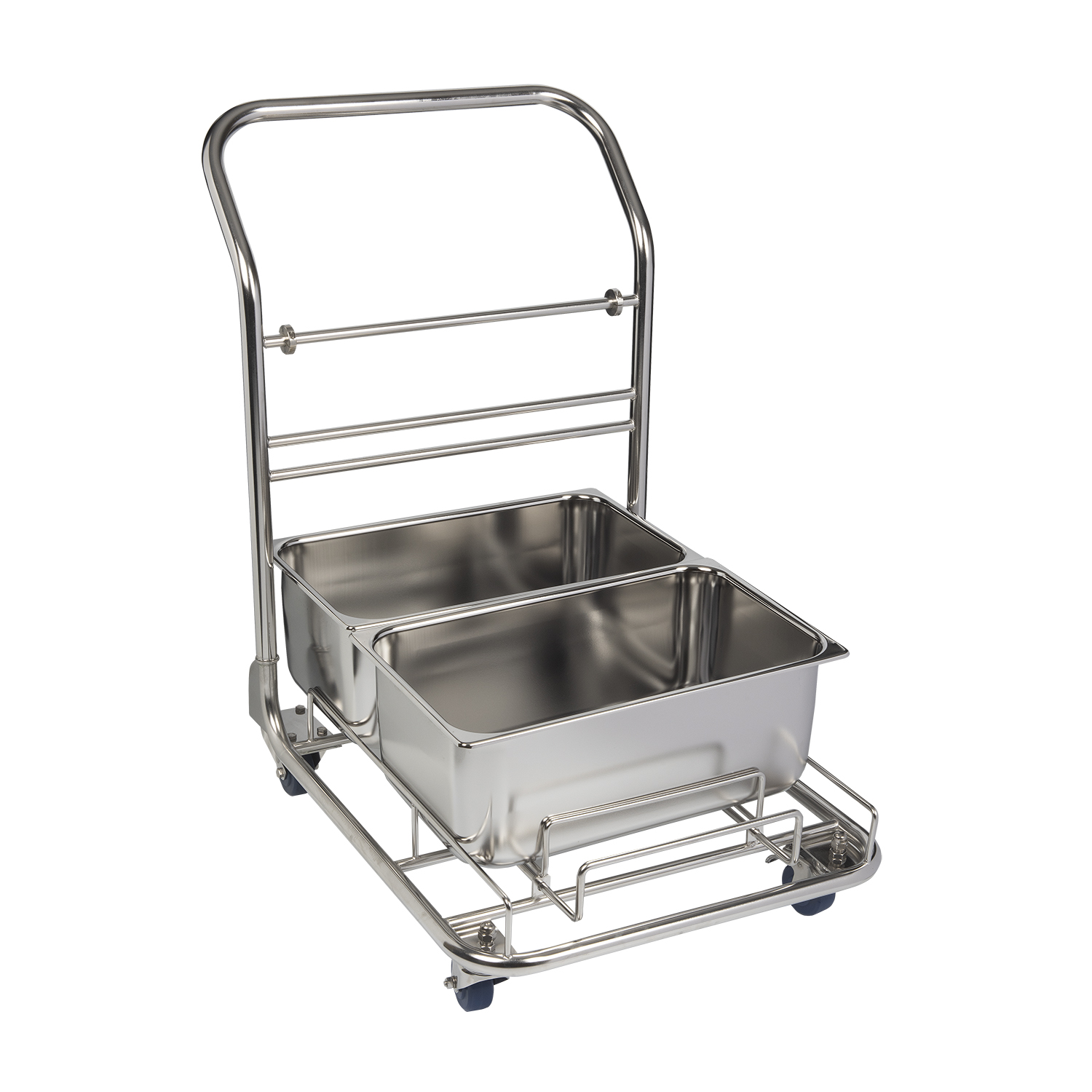 - Incluye dos cubetas de 27 litros (7 galones) y un carrito con cuatro ruedas que no dejan marcas y se pueden esterilizar en autoclave