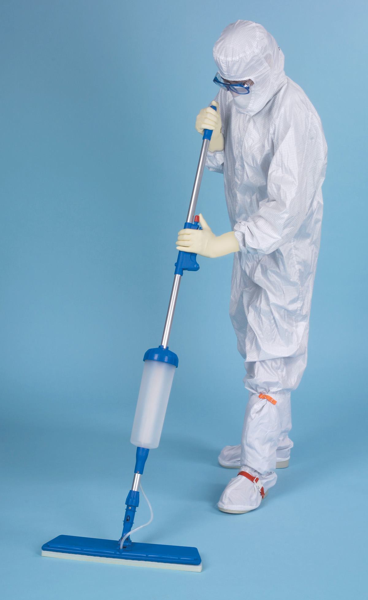 El cabezal de la mop en ángulo limpia las zonas de difícil acceso y está disponible en dos estilos: superficie lisa para la limpieza estándar de suelos y superficie texturizada para una acción más abrasiva. El cabezal de la mop está disponible en versión estéril validada, irradiada con rayos gamma a 10-6 SAL.