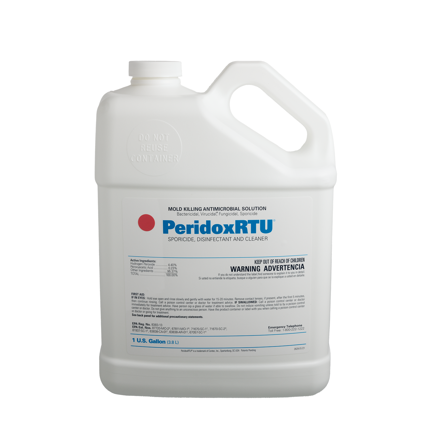 PeridoxRTU® es un desinfectante de amplio espectro registrado por la EPA que elimina esporas y más de 40 microorganismos. PeridoxRTU actúa rápidamente y es eficaz contra las esporas bacterianas en 3 minutos, las bacterias y los virus en 2 minutos, los hongos en 1 minuto y la tuberculosis en 5 minutos.
