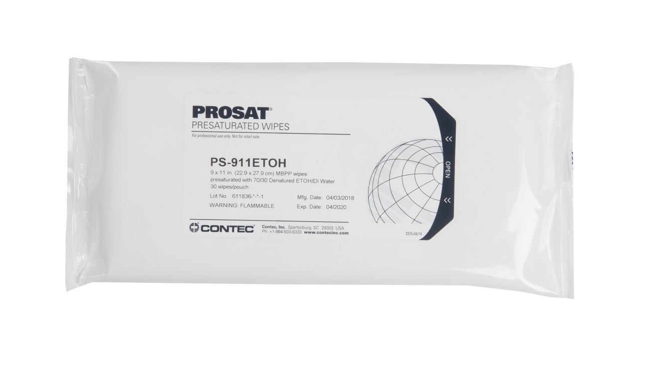 Contec's PROSAT® Sterile™ Polypropylene wipes are presaturated with 70% denatured ethanol and 30% ...